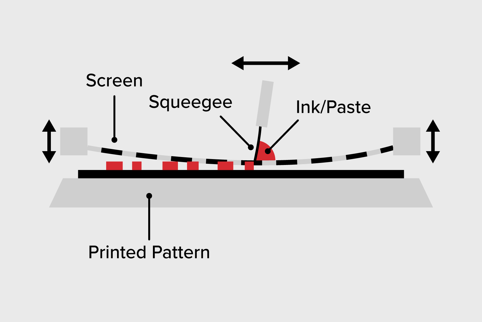 Screen Printing is a technique that has been used to produce electronic circuits since 1940s, transferring a viscous ink through a patterned mesh onto a substrate using a squeegee.